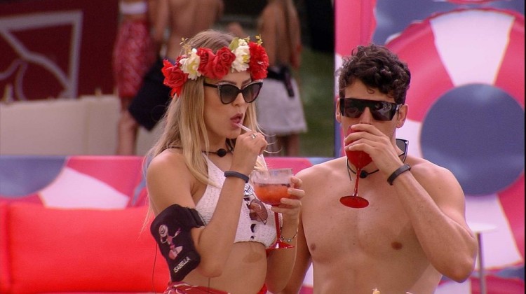 A potiguar aproveita quando a bacharel em Direito se afasta em propõe brinde ao confinado. A sister indica que ele precisa trocar a taça de mão e, depois, entrelaça o seu braço no braço do vendedor de queijos. A dupla bebe junto. Logo em seguida, Tereza chega e sugere que a estudante de Medicina dê um selinho no barman.