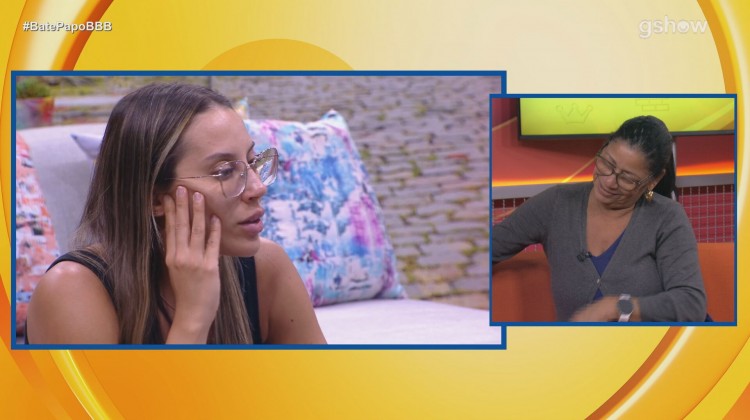 Gil do Vigor e Ceci Riberio a lembram que ela foi orientada por Guilherme a falar diretamente seus incômodos ou até usar o Sincerão para dividir seus pensamentos. Ela explica: "Pensei na hora: 'Ô menina, essa tua frescura, a cama é tua? Tu comprou alguma?".