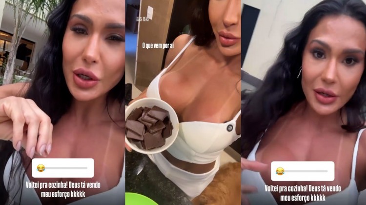 A musa fitness Gracyanne Barbosa posta em seu Story que "voltou para a cozinha" nesta quarta-feira (16) e está preparando receitas que pretende compartilhar com os seus seguidores, incluindo dicas fitness para a Páscoa. Mas não está sendo tão fácil assim!