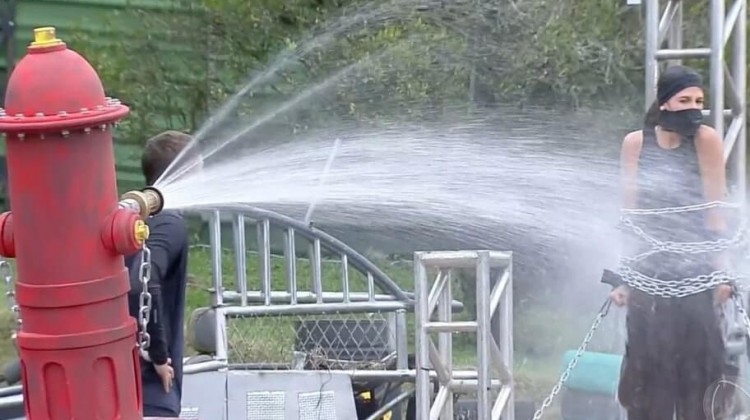 Na gincana, as mulheres foram amarradas a uma estrutura, e os homens foram informados de que precisavam encontrar a chave certa para soltá-las antes que o tempo de três minutos se esgotasse e elas fossem atingidas por um jato de água durante 30 segundos.